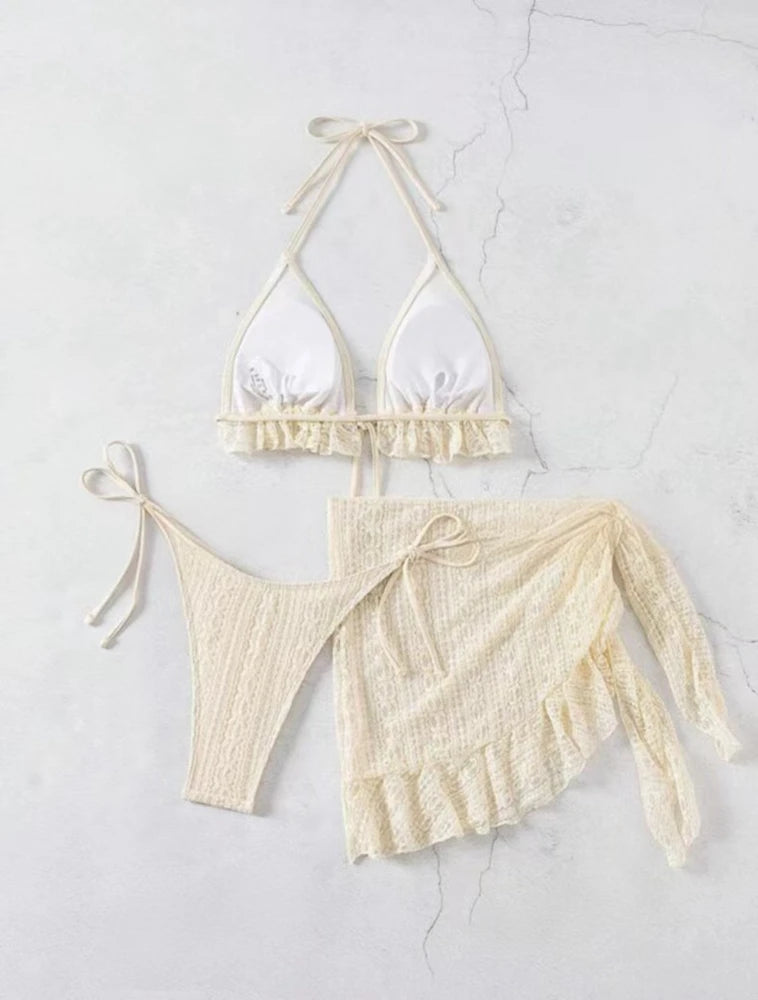 Sexy Mesh Bikini Swimsuit Women Bikini 3 Piece Set Solid Black/White/Ivory Summer 2025 New Beachwear Cute Bathing Suit Swimsuits